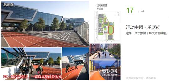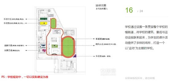 學(xué)校通過設(shè)置一條貫穿整個(gè)學(xué)校的慢跑道,將學(xué)校的建筑、景觀與運(yùn)動設(shè)施聯(lián)系起來,為學(xué)生的課外活動提供了多樣的場所,打造一個(gè)以“運(yùn)動”為主題的學(xué)校。