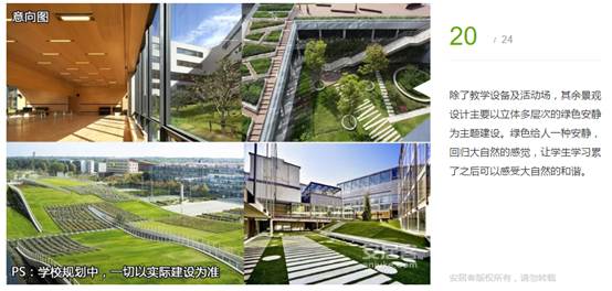 除了教學(xué)設(shè)備及活動場,其余景觀設(shè)計(jì)主要以立體多層次的綠色安靜為主題建設(shè)。綠色給人一種安靜,回歸大自然的感覺,讓學(xué)生學(xué)習(xí)累了之后可以感受大自然的和諧。