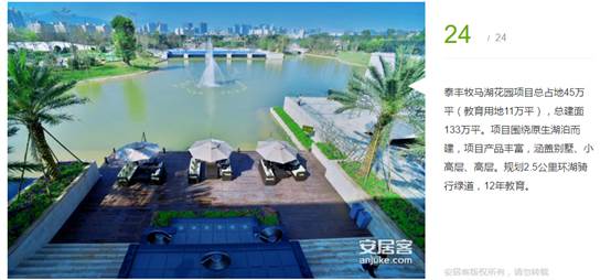 泰豐牧馬湖花園項(xiàng)目總占地45萬平(教育用地11萬平),總建面133萬平。項(xiàng)目圍繞原生湖泊而建,項(xiàng)目產(chǎn)品豐富,涵蓋別墅、小高層、高層。規(guī)劃2.5公里環(huán)湖騎行綠道,12年教育。